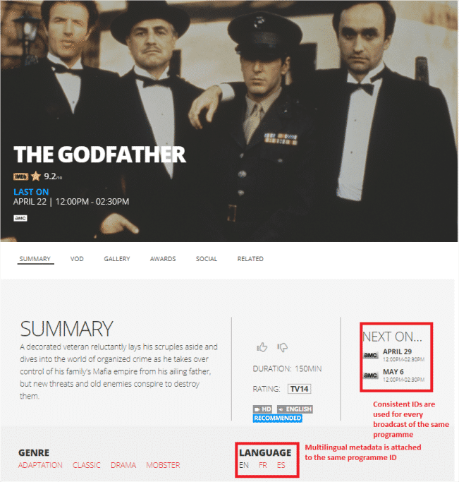 • The consistency of programme, season and series IDs for easy identification of originations and repeats